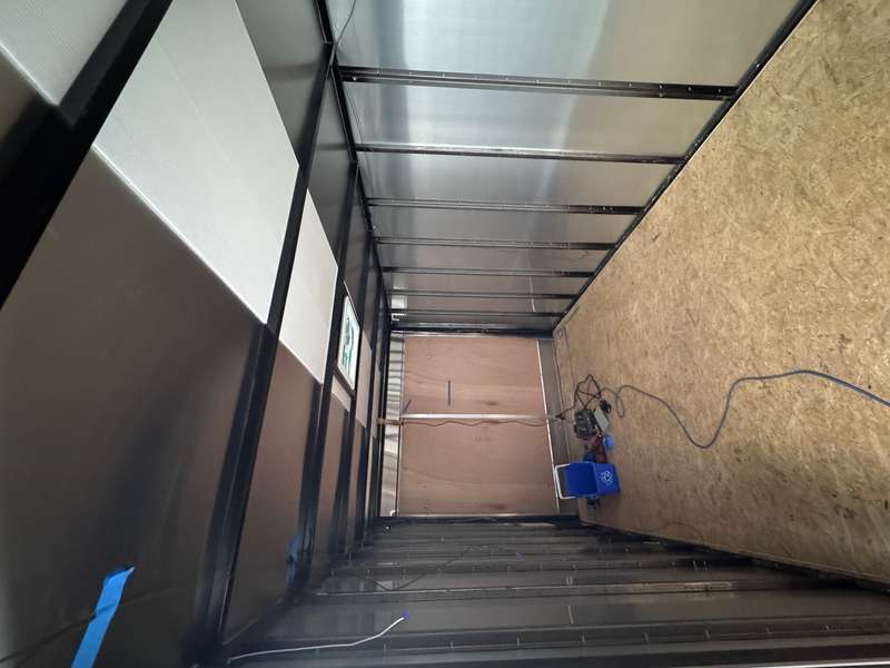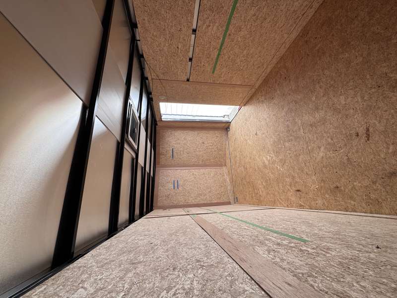 The factory setup worked fine for a cargo hauler, but this is becoming something entirely different. Clearing it out gave us a true blank slate to start framing the walls and building out the utility space for electrical, plumbing, and insulation.